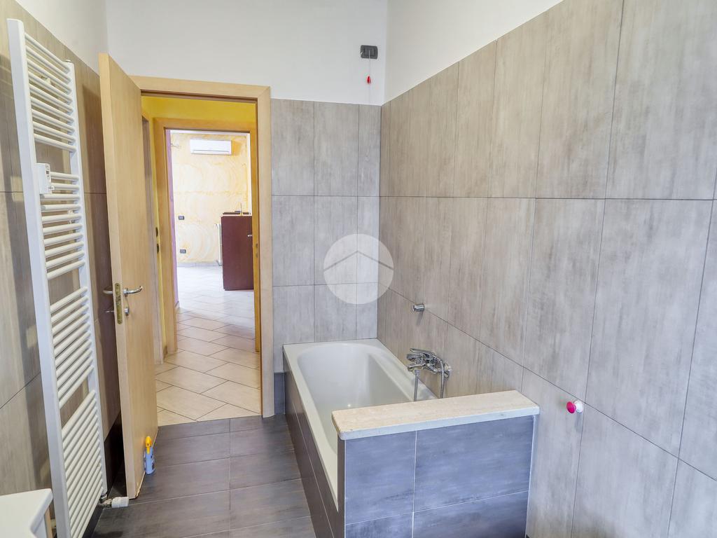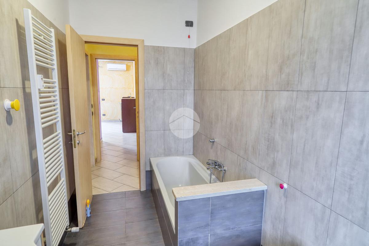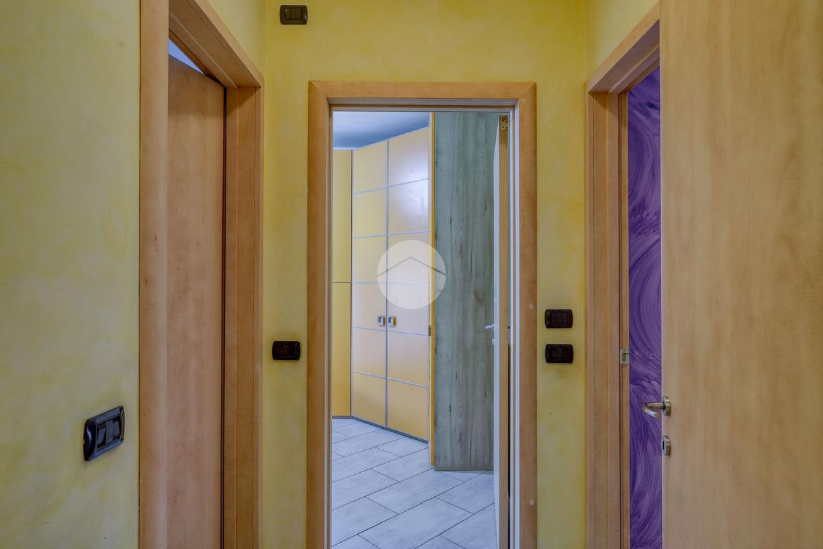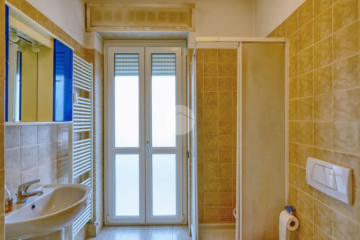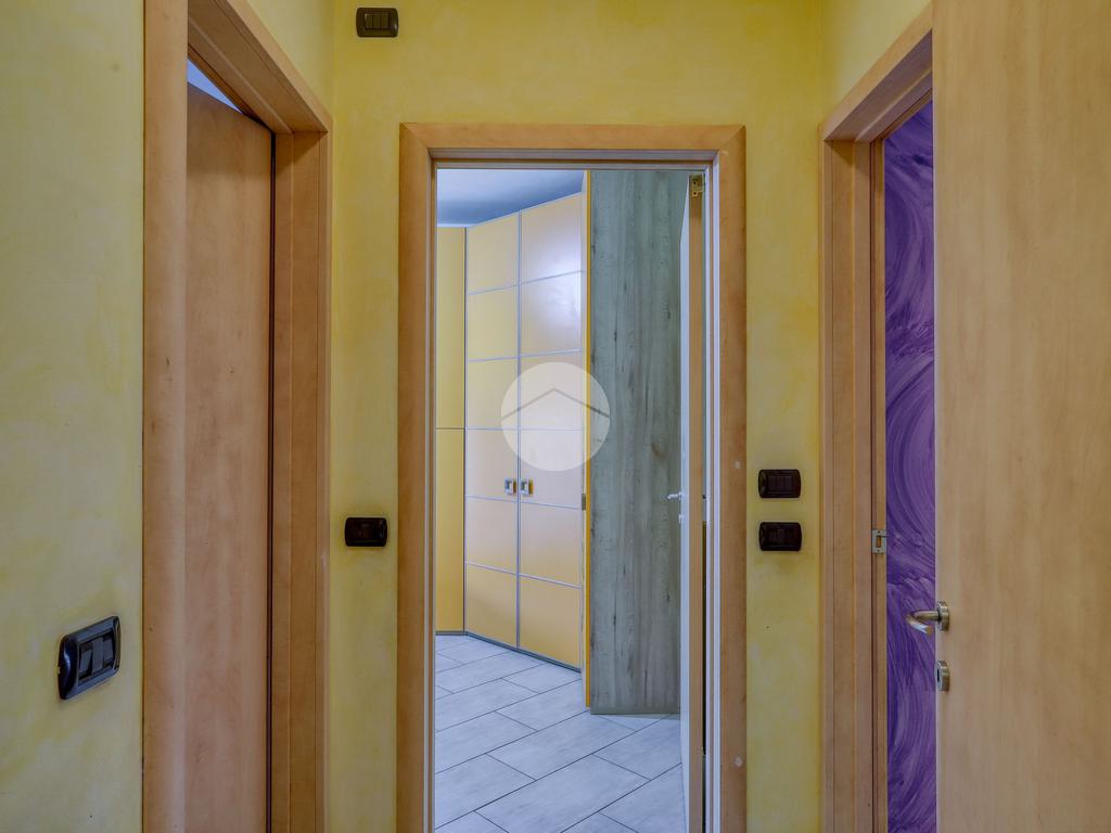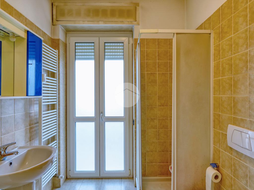 Dall'ingresso si accede al corridoio che conduce al soggiorno separato dalla cucina abitabile e al bagno finestrato con doccia.